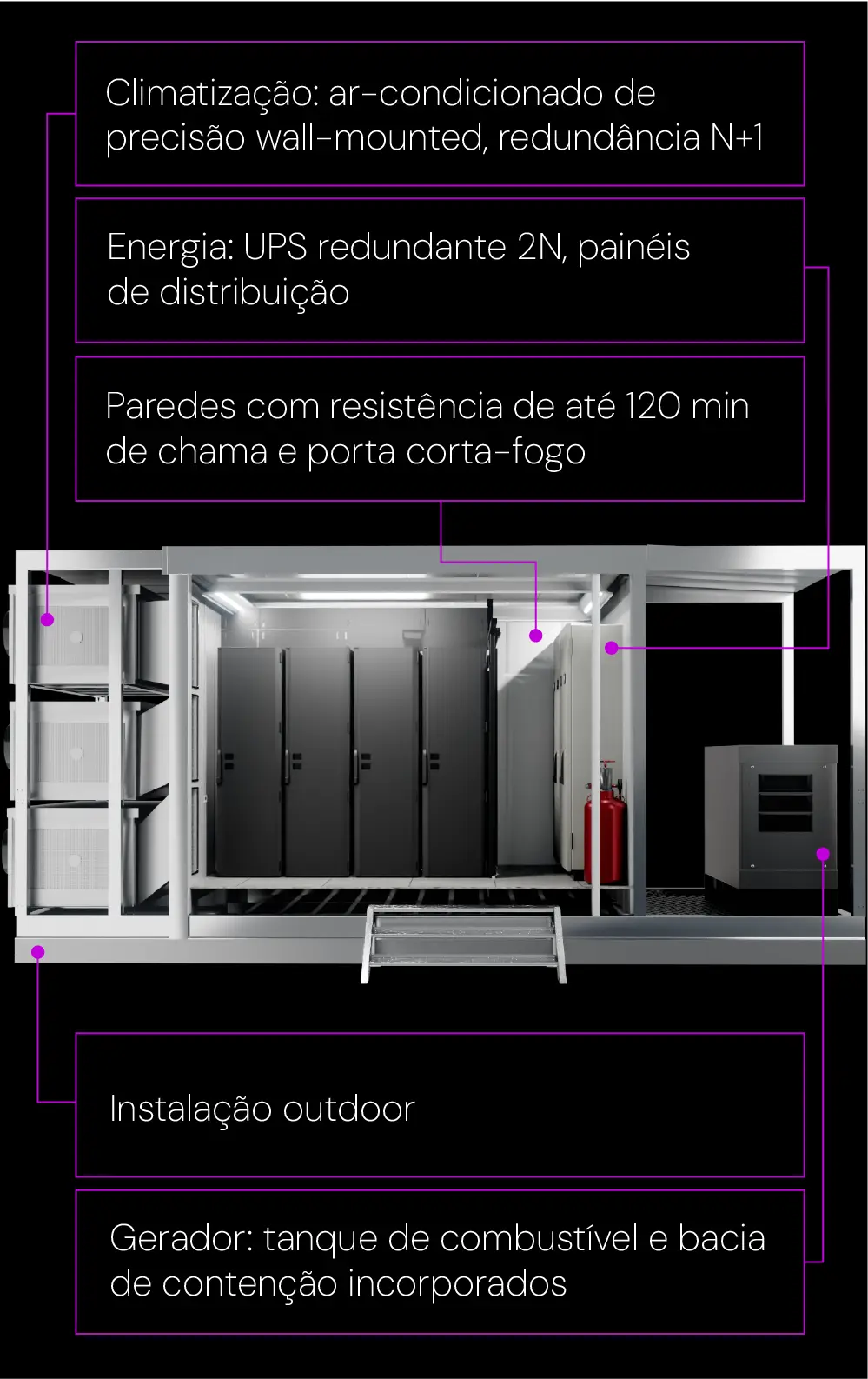 Projetado para acelerar a entrega de data centers modulares, o Express garante implantação completa em tempo recorde, a escolha certa para empresas que precisam de disponibilidade imediata.