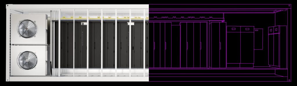 Cada módulo é um sistema all-in-one, com energia, climatização, segurança e cabeamento integrados e prontos para operação.